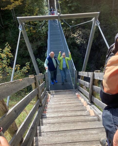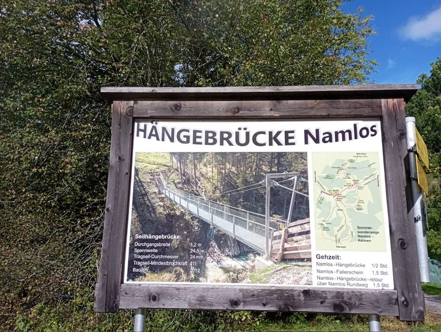 Am 16. 9. sind 20 Mitglieder von Namlos aus über die Hängebrücke nach Fallerschein marschiert. Wir wurden vom Michl und seinem Team mit den allerfeinsten Wildspezialitäten verwöhnt .